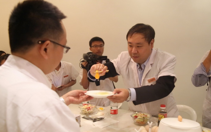 (京東生(sheng)鮮事業部(bu)運營(ying)總經(jing)理(li)唐詣深在(zai)聖迪樂村現(xian)場(chang)體(ti)驗(yàn)用(yong)筷子(zi)夾得起來的(de)雞蛋)